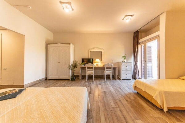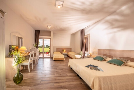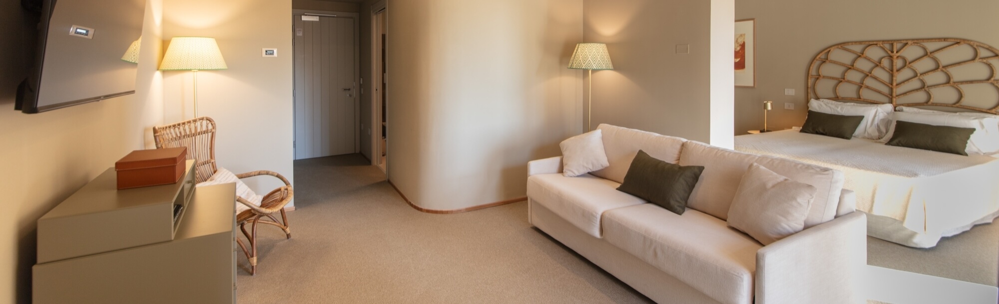 Sistemazione spaziosa e confortevole per tutta la famiglia, le nostre Camere Family sono composte da un unico ambiente ampio e luminoso. Potrai goderti il relax sul tuo balcone o veranda privata, ammirando la vista sullo splendido giardino che circonda l'hotel. Le camere Family si trovano al primo e secondo piano dell’Hotel e possono ospitare fino a quattro persone grazie alla presenza di un letto matrimoniale queen size e di un comodo divano letto.