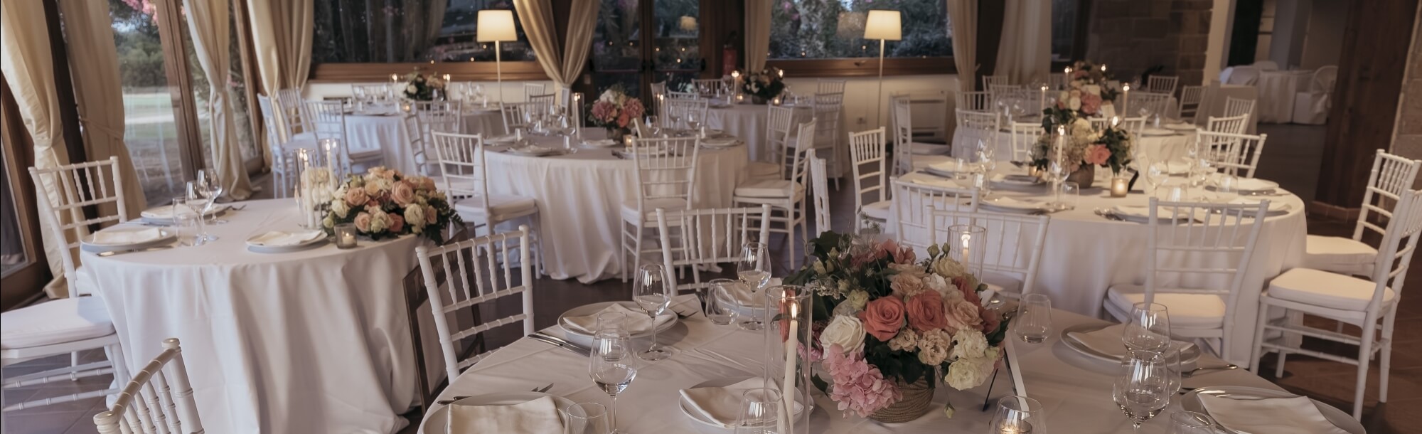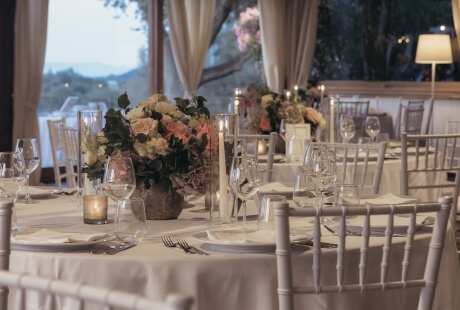 Il personale di sala garantisce sempre affidabilità, eleganza e raffinatezza e la mise en place sarà curata in ogni dettaglio con tavoli rotondi per otto o dieci persone e allestimenti studiati su misura per il vostro matrimonio da favola.
