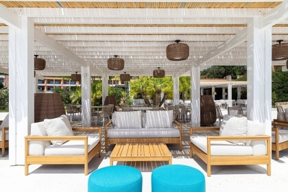 Il nuovo punto bar e bistrot di Is Molas con vista sul campo da golf e il mare di Pula.